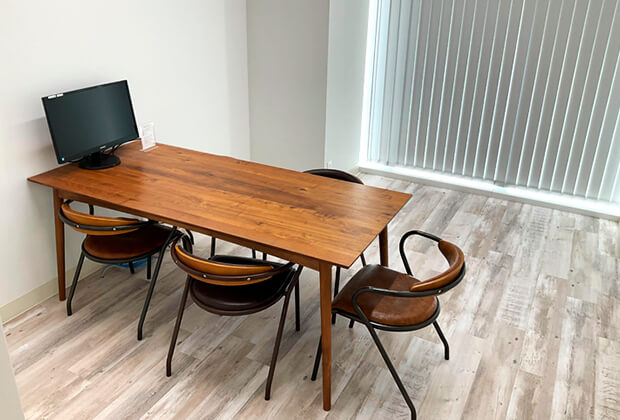 | 設備 | 会議室A:テーブル(1台) イス(5脚) 会議室B:テーブル(1台) イス(6脚) 共通:Wi-Fi コンセント |