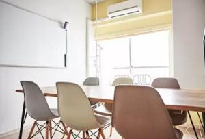 会議室の内装には清潔感があり、プロフェッショナルな雰囲気を提供しています。会議室は受付スタッフが常駐しており、ビジネスミーティングや商談に適した環境が整えられています。設備としてはホワイトボードや無料Wi-Fi、ウォーターサーバーなどが完備されており、快適に利用することができます。