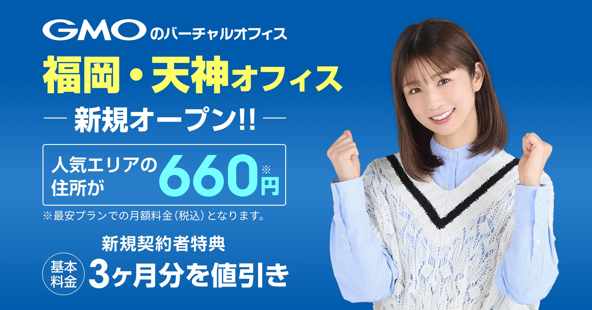 GMOオフィスサポート福岡天神店は、九州最大の繁華街である天神エリアに位置する次世代型バーチャルオフィスです。2025年1月現在、業界最安水準の月額660円から利用可能で、初期費用0円のキャンペーンを実施中。天神ビッグバン再開発エリアに近接し、福岡空港から地下鉄で約11分という好立地。郵便物の画像確認サービスやGMOあおぞらネット銀行との連携による円滑な口座開設など、東証プライム上場企業グループならではの充実したサポート体制が特徴です。