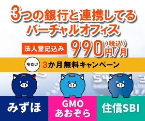 | 法人口座サポート | 以下の3銀行と提携 みずほ銀行 GMOあおぞらネット銀行 住信SBIネット銀行 |